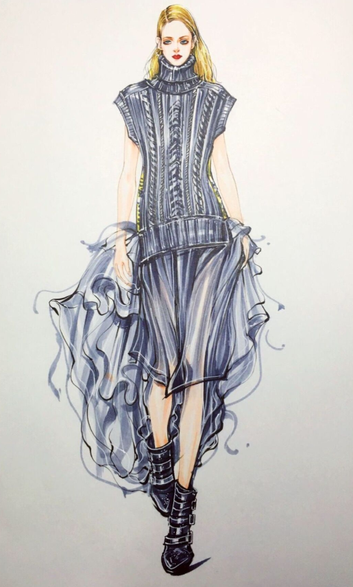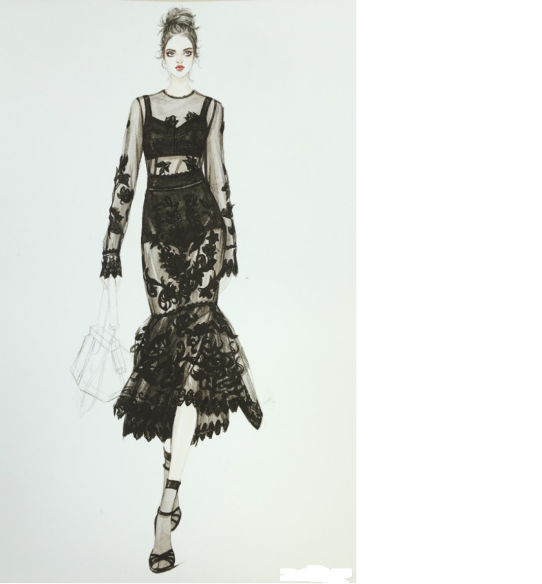 3、時裝畫人體著裝效果圖畫技法: