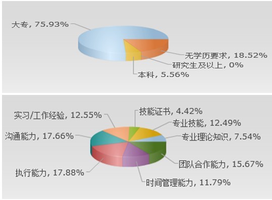 圖4:電商企業(yè)對畢業(yè)生的學(xué)歷要求和最看重的素質(zhì)