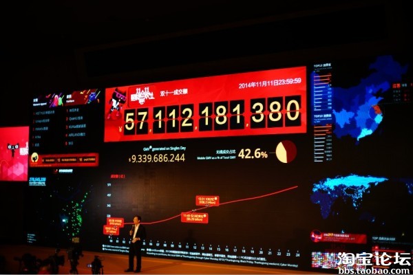 11月12日零點,2014年天貓雙十一數(shù)據(jù)揭曉,單日成交總額超過571億元。今年的天貓雙十一首次面向全球,最終共有217個國家和地區(qū)在地圖大屏被點亮,實現(xiàn)成交。