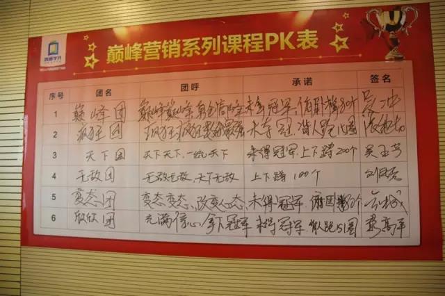 下午課程依然由劉紅衛(wèi)導(dǎo)師主講,以PK文化為主題,闡述了企業(yè)PK文化的三個(gè)要義:PK文化的塑造與形成、PK系統(tǒng)的構(gòu)建、PK的規(guī)劃與形式,鼓勵(lì)學(xué)員敢于定下銷售目標(biāo),敢于個(gè)人與領(lǐng)導(dǎo)PK,團(tuán)隊(duì)與團(tuán)隊(duì)PK,激發(fā)學(xué)員強(qiáng)盛的奮斗精神與執(zhí)行力,促進(jìn)業(yè)績(jī)爆破。
