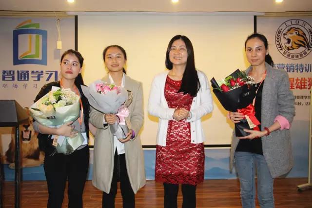 金屋美嬌的陳總也來到現(xiàn)場(chǎng),并為她三位如此努力如此認(rèn)真的員工獻(xiàn)上鮮花。陳總談到,感謝智通提供這么好的學(xué)習(xí)平臺(tái),無論能力還是心態(tài),她們都得到成長(zhǎng)